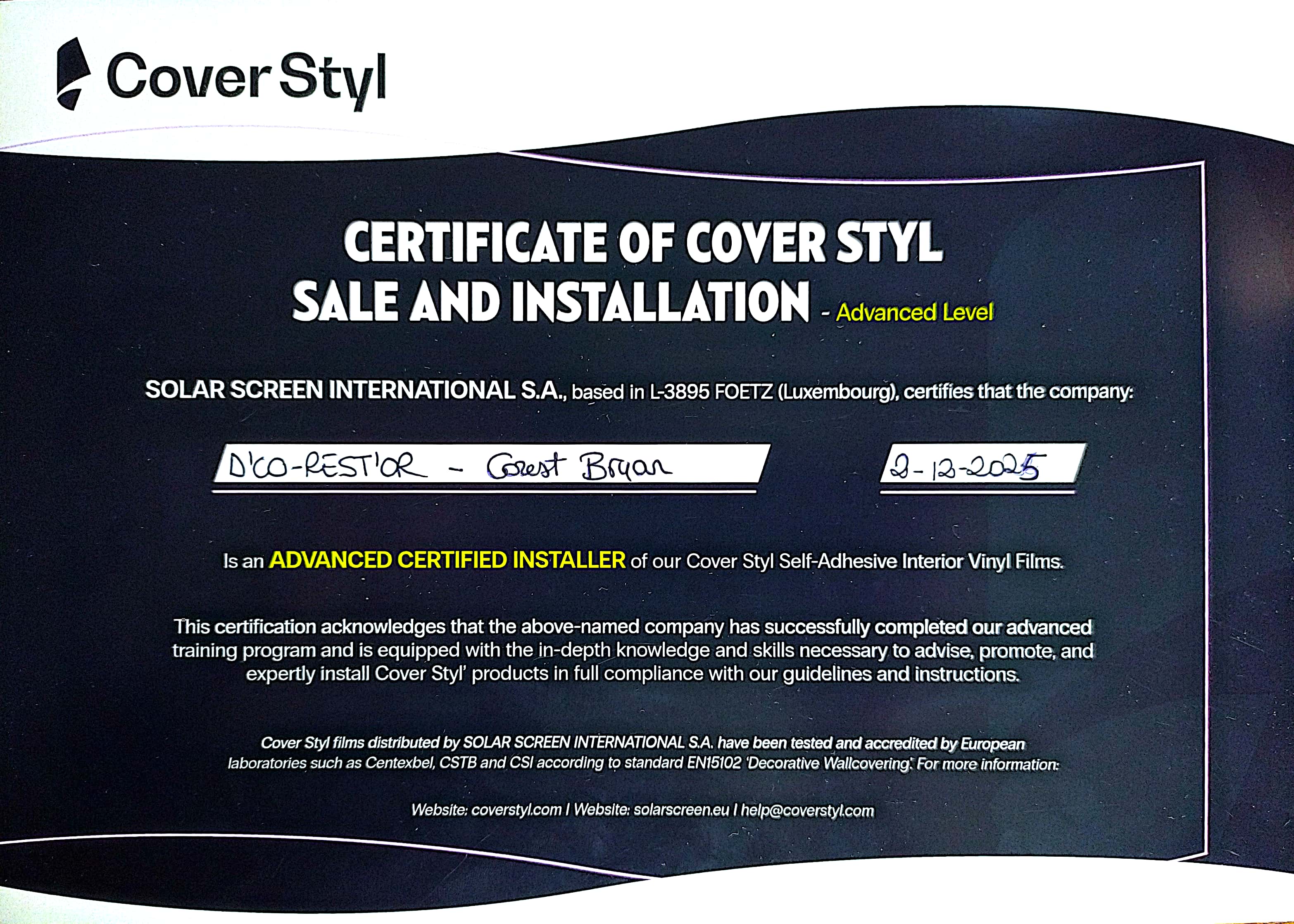 En tant qu’artisan peintre décorateur dans le Morbihan, je suis formé et certifié pour la réalisation de covering de mobilier.